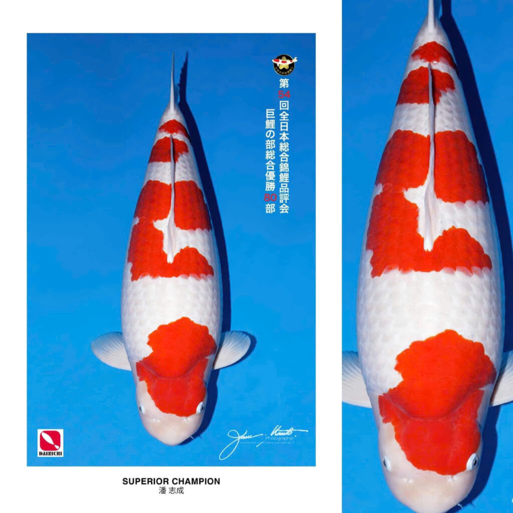 Cá chép tự nhiên thường có màu xanh đen hoặc đồng để ngụy trang. Ngược lại, cá Koi là một bảng tranh rực rỡ. Các dòng như Kohaku, Sanke hay Showa được định giá dựa trên sự sắc nét và bố cục của các mảng màu trên lưng – điều mà bạn không bao giờ tìm thấy ở cá chép sông.